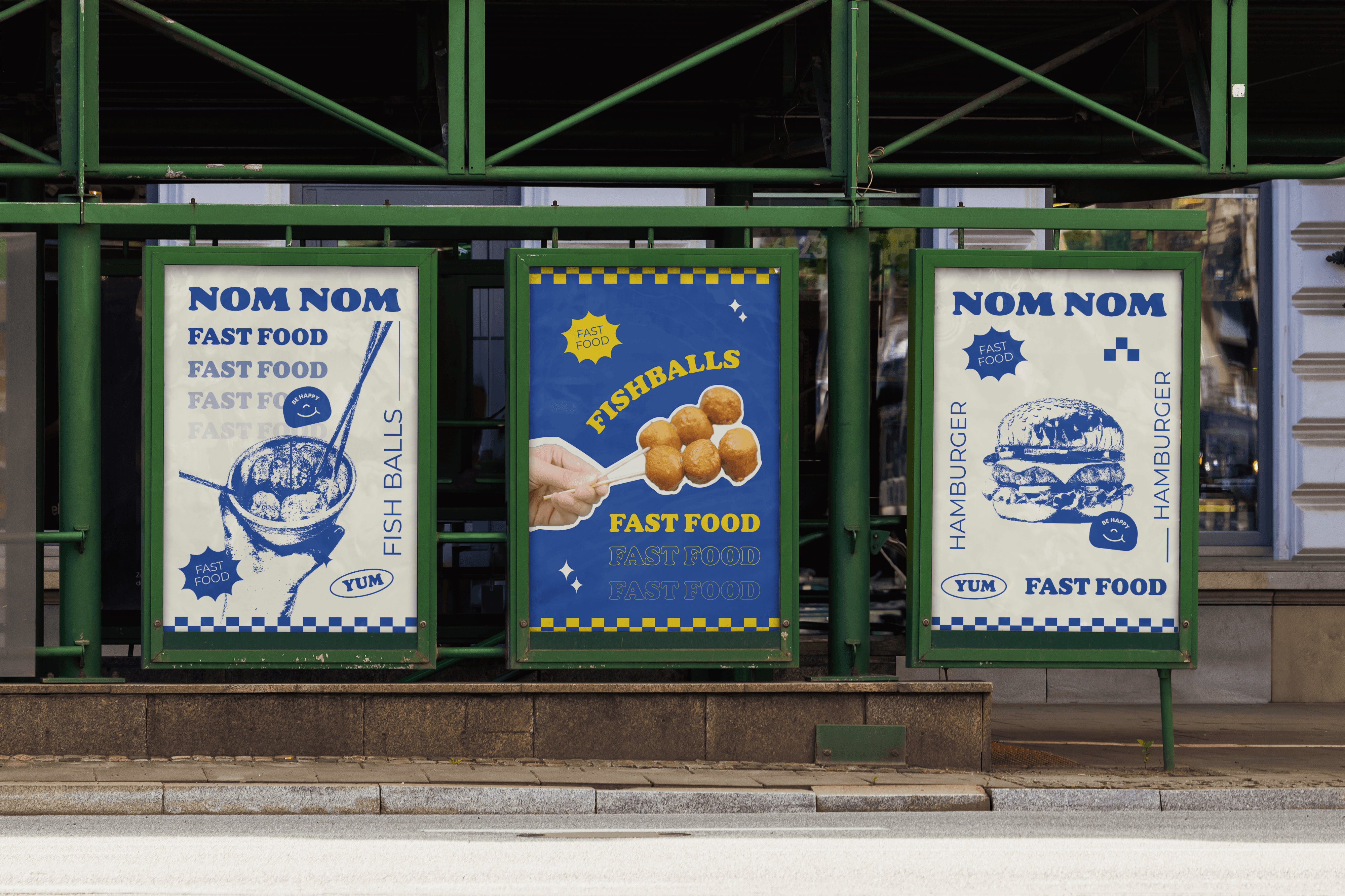 Nom Nom là nhà hàng thức ăn nhanh chuyên phục vụ các món chiên như gà, hamburger và cá viên. Logo thương hiệu được thiết kế sáng tạo dựa trên hình ảnh đặc trưng của các món ăn. Hình dáng tròn giúp logo trở nên thân thiện, gần gũi và thể hiện tinh thần vui nhộn, dễ thương và trẻ trung.